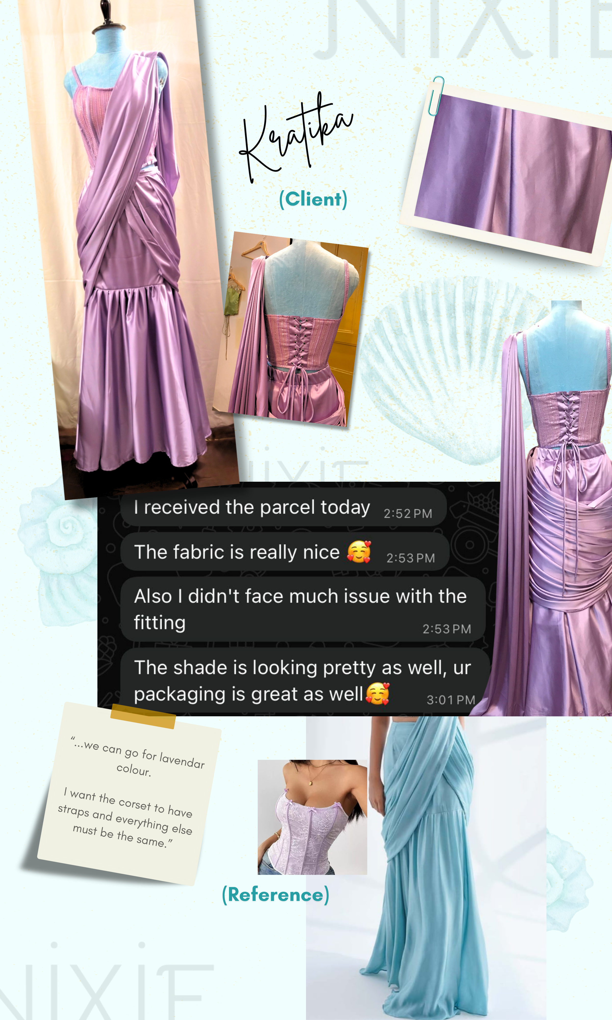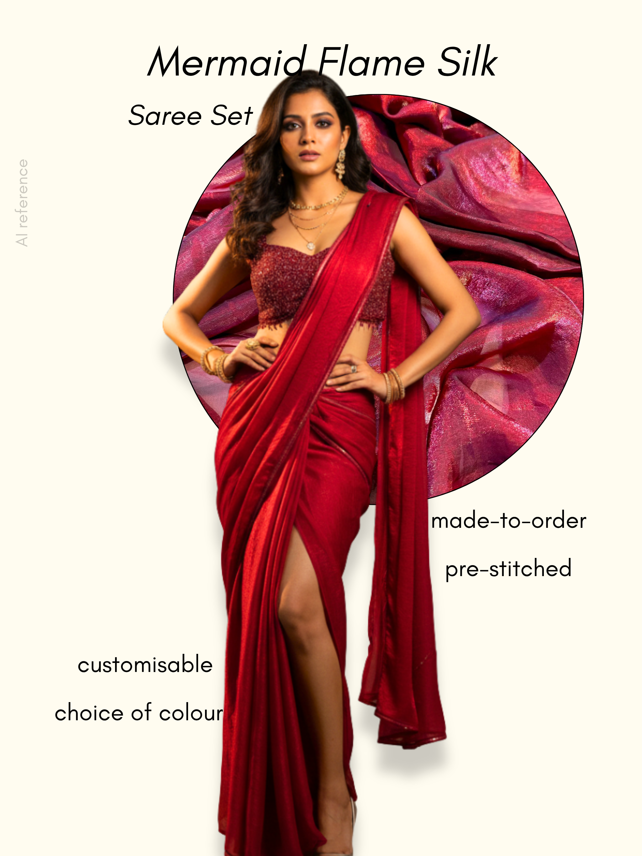 We do not source fabrics before an order is placed, since every piece is customised and fabric options are selected specifically for your design. Once the order is confirmed, we share videos, close ups and drape shots of all suitable fabrics for your approval.