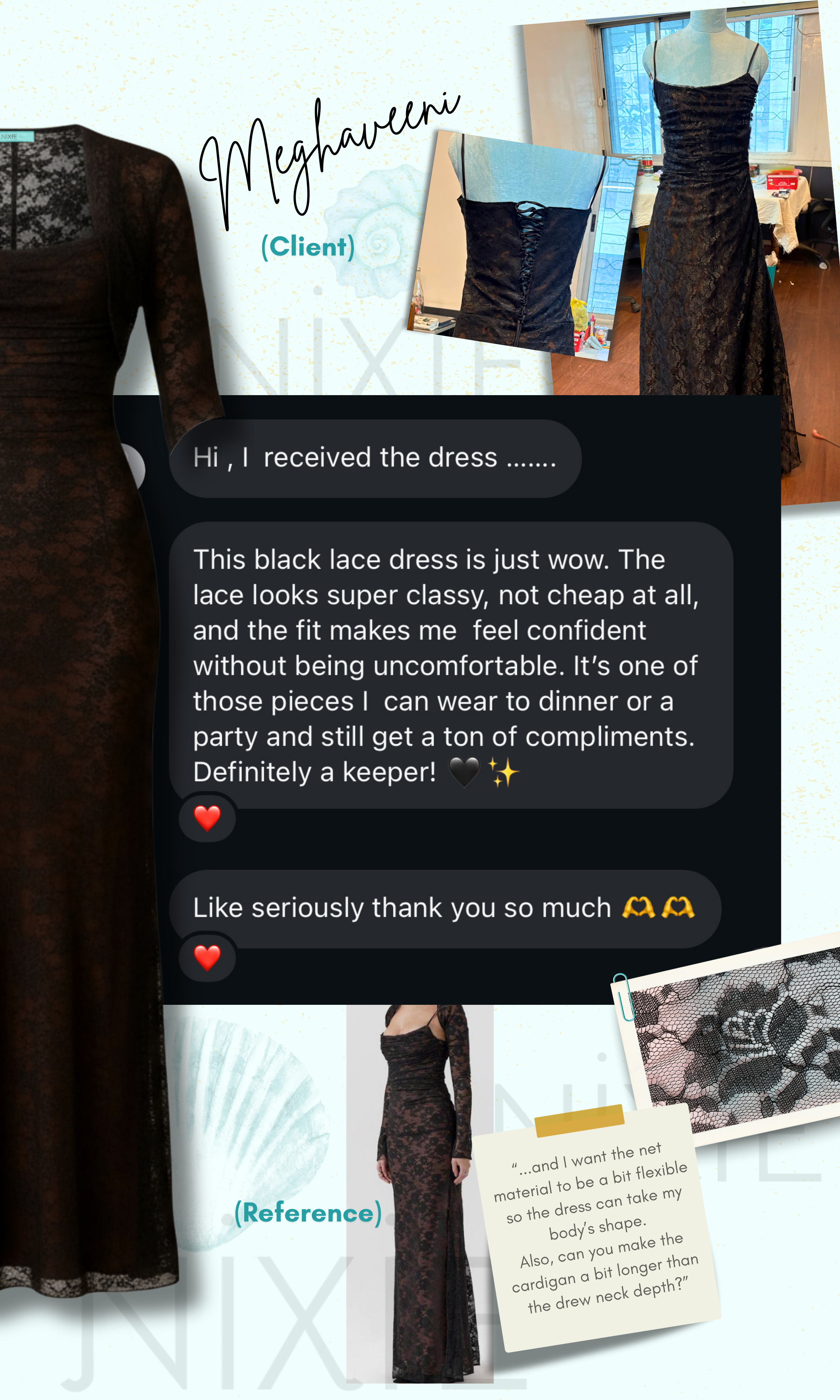 Your outfit is crafted with close attention to your inspiration, measurements and the approvals you share with us along the way. If you need minor adjustments for fit, we are happy to help. Since each piece is made specially for you, full cancellations or remakes are not possible, but we always work with you to make sure the final look feels right and comfortable.