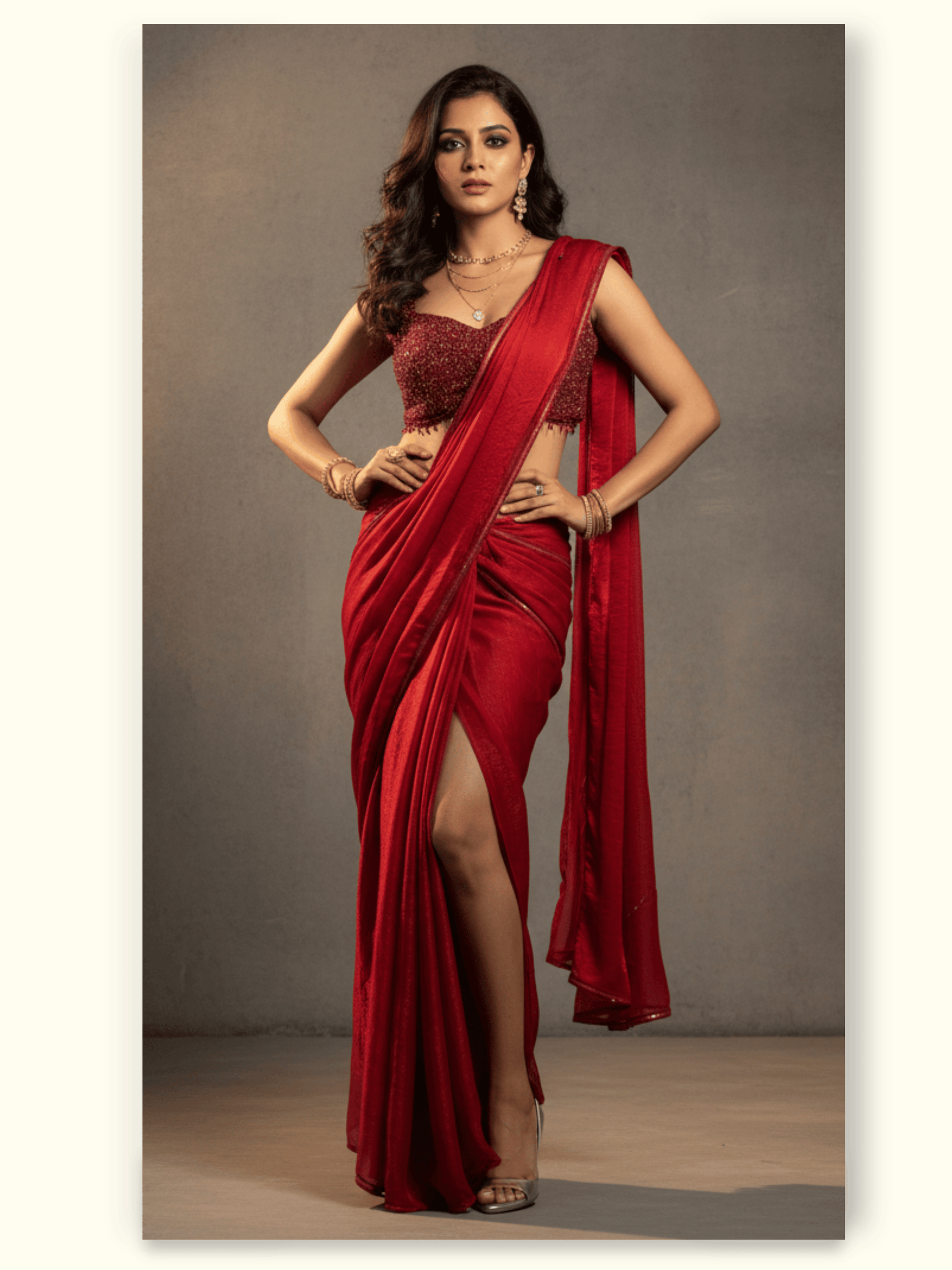 Decrease quantity for Mermaid Flame Silk Saree Set